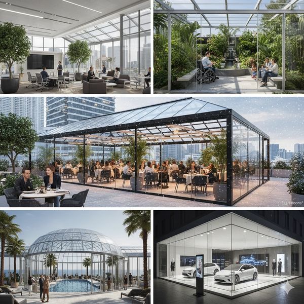 Our commercial division works directly with business owners, property managers, architects, and general contractors to deliver turn-key glass structures that meet all building codes, energy requirements, and ADA accessibility standards.